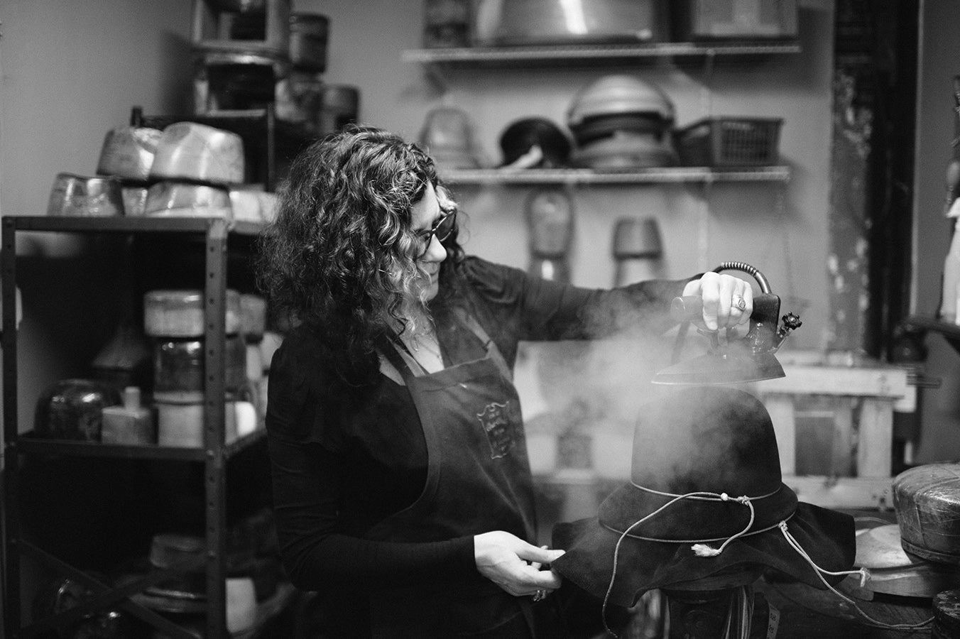 All hats are made in NYC and are hand blocked on Cha Cha's collection of vintage and specially designed blocks. Cha Cha uses the finest quality straws and felts.