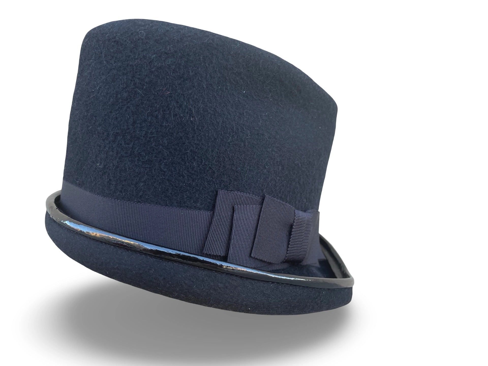 Black Cashmere Felt Top Hat with Grosgrain and Patent Leather Trim